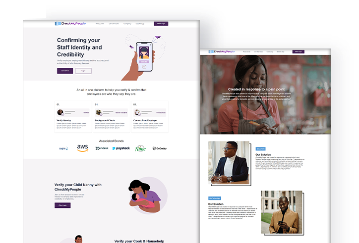 Check My People is a background screening service platform that helps businesses verify employee history and credentials. The website features a modern, professional design with clear service offerings and an intuitive user interface.