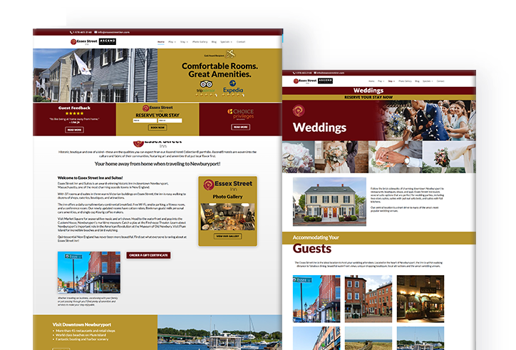 Located in the heart of downtown Newburyport, Massachusetts, Essex Street Inn & Suites is a historic boutique hotel offering 37 uniquely decorated rooms and suites. Guests enjoy amenities such as complimentary continental breakfast, free Wi-Fi, onsite parking, a fitness room, and a conference room. The inn's prime location provides easy access to local shops, eateries, and attractions.