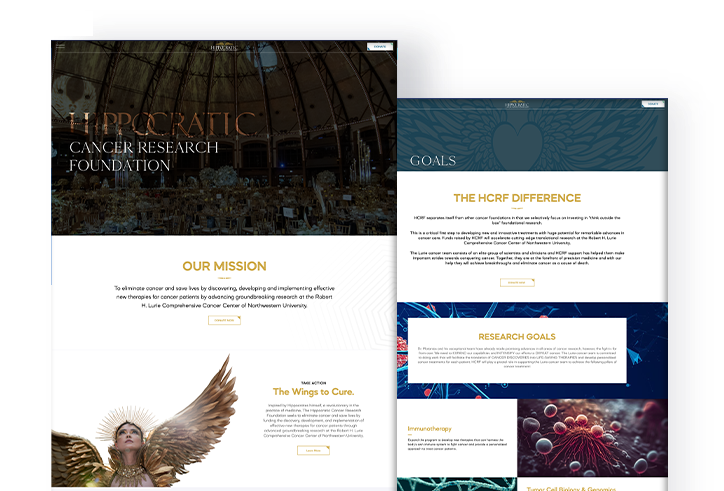 The Hippocratic Cancer Research Foundation (HCRF) is a nonprofit organization dedicated to eliminating cancer and saving lives by funding groundbreaking, "out-of-the-box" research at the Robert H. Lurie Comprehensive Cancer Center of Northwestern University. The website serves as an informative platform, highlighting HCRF's mission, events like the annual Wings to Cure gala, and opportunities for community involvement and donations