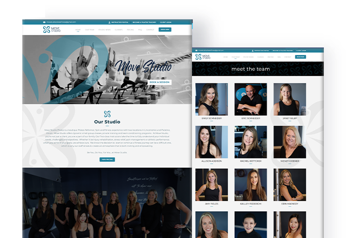 Move Studio Pilates is a boutique fitness studio with locations in Lincolnshire and Palatine, Illinois, offering Pilates Reformer, Spin, and fitness classes. The website provides information on dynamic small group classes, private training, and team conditioning programs, aiming to create an inviting and empowering atmosphere for clients.